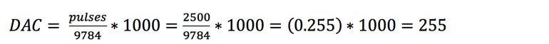例如,如果在TIMER1中獲得2500個脈沖,則可以通過將讀取的脈沖除以我們先前發現的常數9.784來獲得DAC的值: